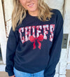 Celebrate your team pride in the Chiefs Floral Red Bow Sweatshirt. This black sweatshirt features a charming red bow detail that adds a pretty detail to your Game Day fit. Perfect for Stay cozy while cheering on those Chiefs!