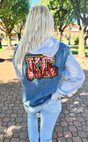 Add some wild flair to your game day look with this jean jacket featuring a sparkling KC Chiefs sequence patch surrounded by vibrant leopard print. It’s the perfect mix of fierce and fun. Button up 2 flap pocket on the front with fleece sleeves and detachable hood. Roomy and relaxed fit.