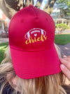 Red Chiefs Heart Football embroidered hat. The cutest Kansas City Chiefs football design on a beautiful embroidered red hat. Let's Go Chiefs!