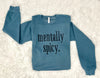 Aren't we all? Mentally Spicy design on a soft teal sweatshirt.