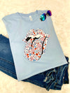 The playful design brings a pop of color and personality to everyday wear. Tounge Red and White Floral Tee printed on a pretty sky blue.