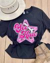 Can we get a Yee Haw for this black tee with a hot pink neon print. This one you need for a night out!